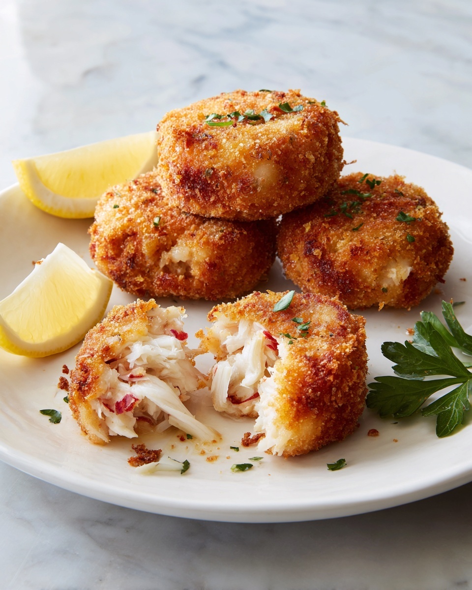 A squeeze of fresh lemon juice over the warm crab cakes instantly brightens the flavors, while a dollop of creamy tartar sauce brings a tangy richness that’s irresistible. Fresh chopped parsley sprinkled on top adds a pop of color and freshness that makes every bite feel special.
