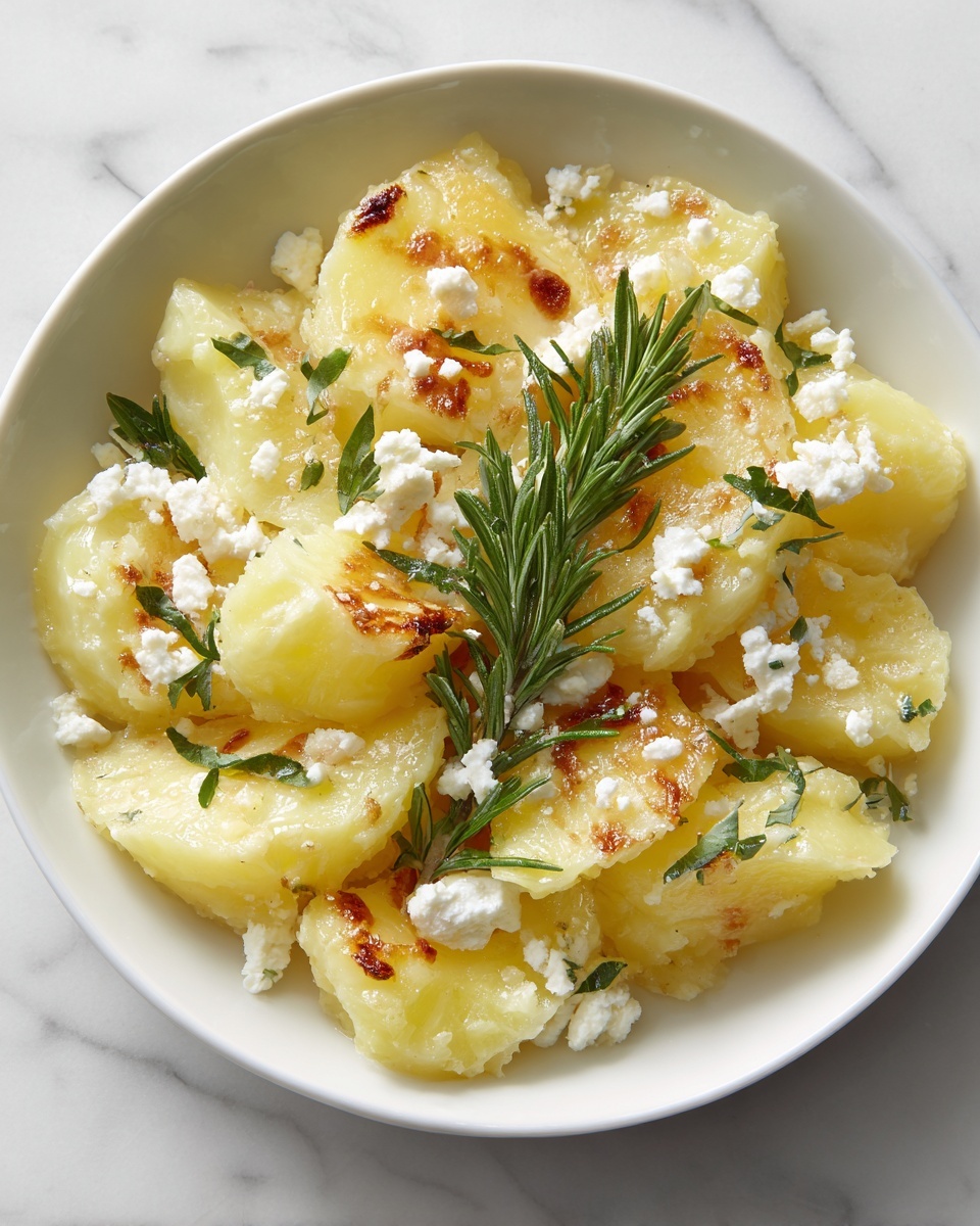 For a more festive presentation, serve the potatoes in a rustic terracotta dish or on a wooden board garnished with sprigs of fresh herbs. You can also layer them atop a bed of sautéed spinach or kale for added color and nutrition, turning this lovely side into a showstopper main for vegetarians.