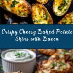 Crispy, cheesy baked potato skins loaded with melted cheddar, smoky bacon, and fresh green onions, perfect as a crowd-pleasing appetizer or flavorful side dish.