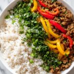 This Beef and Pepper Rice Bowl is a quick and flavorful dish featuring sautéed bell peppers, jalapeño, and ground beef seasoned with garlic and soy sauce. Ready in just 25 minutes, it makes a perfect weeknight dinner served over warm cooked rice.