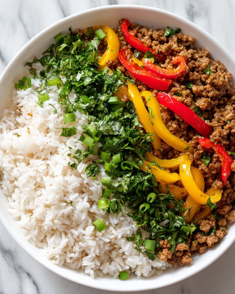Looking to impress? Serve your Beef and Pepper Rice Bowl Recipe in rustic wooden bowls or colorful ceramic dishes to make the vibrant peppers pop visually. You can also get playful by layering ingredients visibly in a glass bowl or mason jar — perfect for meal prep or on-the-go lunches. Adding a fried egg on top or dolloping with sriracha mayo can turn this comfort classic into your new signature dish.