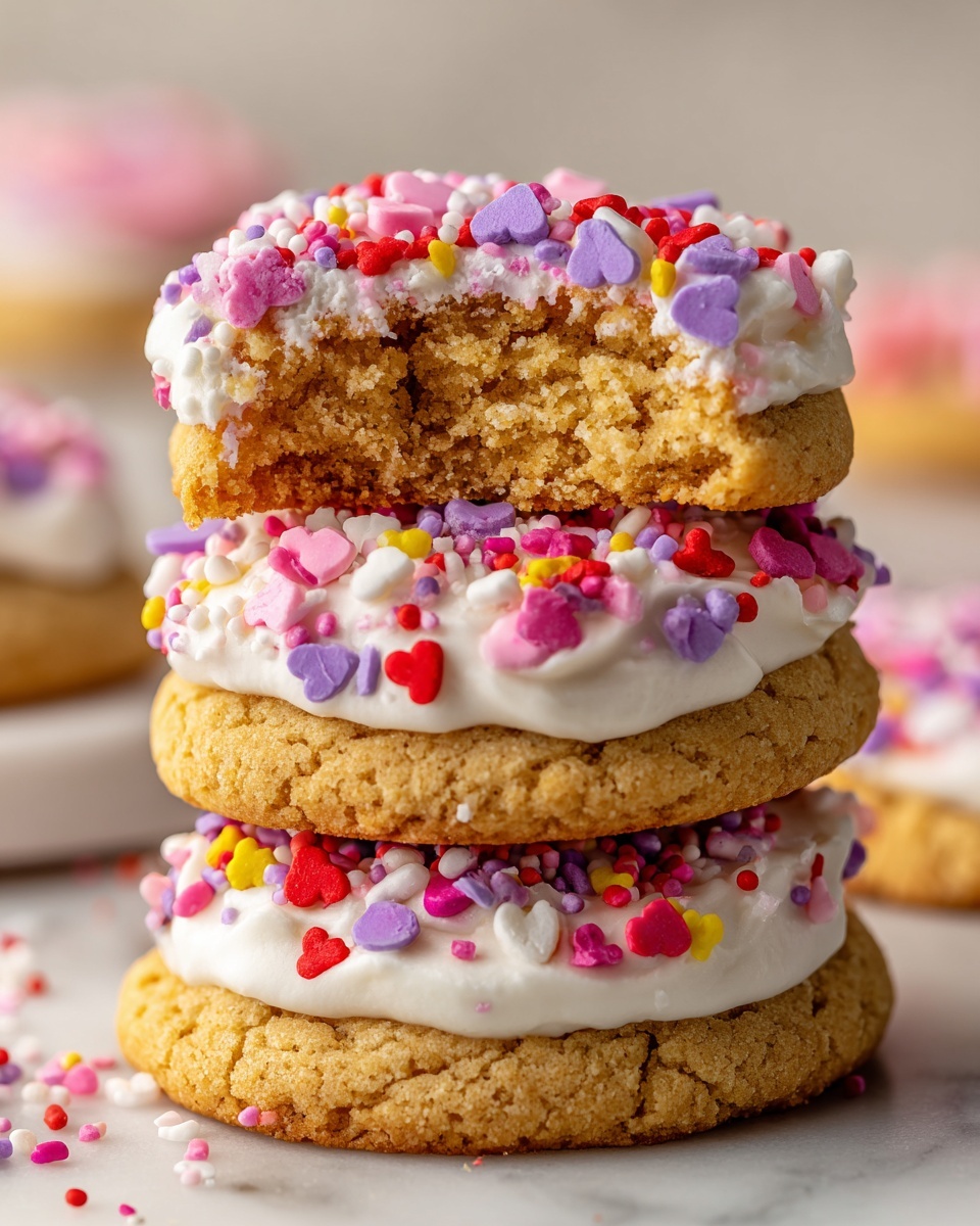 While the glaze and sprinkles make these cookies stunning on their own, you can sprinkle extra finely ground almonds or a touch of finely grated lemon zest for a subtle twist. It adds a fresh aroma and a hint of texture that complements the buttery crumb beautifully.