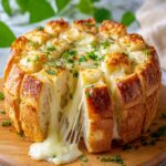 Enjoy a festive twist on cheesy bread with this Cheesy Christmas Tree Bread recipe. Soft, pull-apart dough balls are stuffed with gooey mozzarella, arranged in a charming Christmas tree shape, brushed with an egg wash, baked to golden perfection, and finished with a flavorful garlic herb butter and Parmesan topping. Perfect for holiday gatherings and sharing with family and friends, served warm with marinara or pesto for dipping.