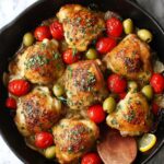 Chicken Provençal is a classic French dish featuring tender, bone-in, skin-on chicken thighs simmered with aromatic herbs, garlic, olives, capers, and cherry tomatoes in a flavorful white wine sauce. This one-pan recipe blends rustic Provencal flavors with a rich, comforting sauce perfect for a hearty family dinner.