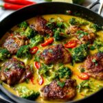 For a fun twist, serve your Coconut Cream Chicken Curry Skillet Recipe in individual bowls layered over fragrant jasmine rice, then garnish with toasted coconut flakes and chopped peanuts for added texture. A wedge of lime on the side invites your guests to squeeze in extra tang. You can also serve it over cooked quinoa or a bed of sautéed greens to turn it into a full, nutrient-packed meal.