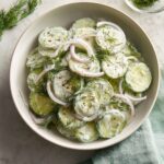 A refreshing and creamy cucumber dill salad featuring thinly sliced cucumbers and red onions tossed in a tangy, herbaceous dressing made with sour cream, mayonnaise, and fresh dill. Perfect as a cool summer side dish or light accompaniment, this no-cook salad is easy to prepare and bursting with bright flavors.