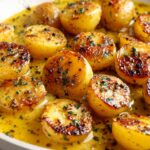 This Creamy Garlic Sauce Potatoes recipe features tender boiled potatoes tossed in a rich, velvety garlic butter cream sauce with Parmesan cheese, garnished with fresh parsley. It’s a comforting and flavorful side dish perfect for any meal.