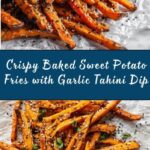 How to Make Crispy Baked Sweet Potato Fries with Roasted Garlic Tahini Yogurt Dip Recipe