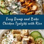 This Dump and Bake Chicken Tzatziki recipe offers a simple, flavorful one-dish meal combining tender chicken, aromatic rice, and creamy tzatziki sauce. Perfect for a hassle-free dinner, the ingredients are layered and baked together, producing juicy chicken infused with herbs and spices, complemented by fresh garnishes of cucumber, feta, and herbs.