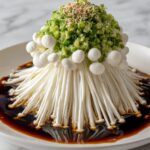 Enoki Mushrooms with Garlic & Scallion Sauce is a simple and flavorful Asian-inspired side dish featuring tender steamed enoki mushrooms topped with a savory garlic and scallion sauce. The dish balances the delicate texture of mushrooms with a rich, umami-packed sauce enhanced by soy, oyster sauce, and a hint of sesame oil, making it a perfect accompaniment to rice or grilled dishes.