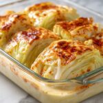 This Escalloped Cabbage recipe features tender cabbage wedges smothered in a rich, creamy cheese sauce made with mozzarella and sharp cheddar, baked to bubbly golden perfection. It’s a comforting, easy side dish perfect for family dinners.