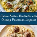This Garlic Butter Meatballs & Parmesan Linguine recipe is a comforting and flavorful dish combining juicy beef meatballs simmered in a rich garlic butter sauce with creamy Parmesan-coated linguine pasta. Ready in just 35 minutes, it’s perfect for a satisfying weeknight dinner that feels special and indulgent.