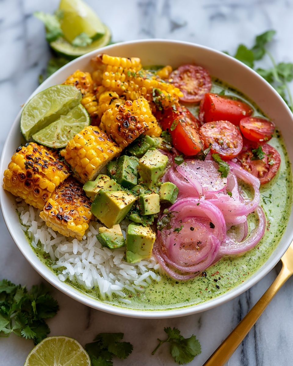 Finish the bowls with a sprinkle of chopped fresh cilantro and a generous squeeze of lime juice. These garnishes brighten the whole dish and add a lovely herbaceous note that ties everything together. Serve it warm, and enjoy the beautiful blend of flavors and textures.
