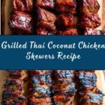 Savor the vibrant flavors of Thailand with these Grilled Thai Coconut Chicken Skewers. Tender chicken pieces are marinated in a rich, aromatic blend of coconut milk, Thai red curry paste, and fresh herbs, then grilled to perfection. This dish offers a perfect balance of creamy, spicy, and tangy notes, making it a perfect main course for summer grilling or any occasion.