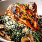 Healthy Mushroom-Stuffed Chicken Breast is a delicious, protein-packed dish featuring juicy chicken breasts filled with a savory mixture of sautéed mushrooms, garlic, spinach, and a blend of Parmesan and mozzarella cheeses. This low-carb, gluten-free recipe is easy to prepare and perfect for a nutritious weeknight dinner or an elegant meal for guests.