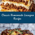 This classic Homemade Lasagna recipe features layers of rich meat sauce, creamy ricotta cheese, and gooey mozzarella baked to perfection. Ideal for family dinners or gatherings, it combines savory Italian sausage and ground beef with flavorful herbs and tomato sauce, layered between tender pasta sheets and topped with melted cheese for a comforting and satisfying meal.