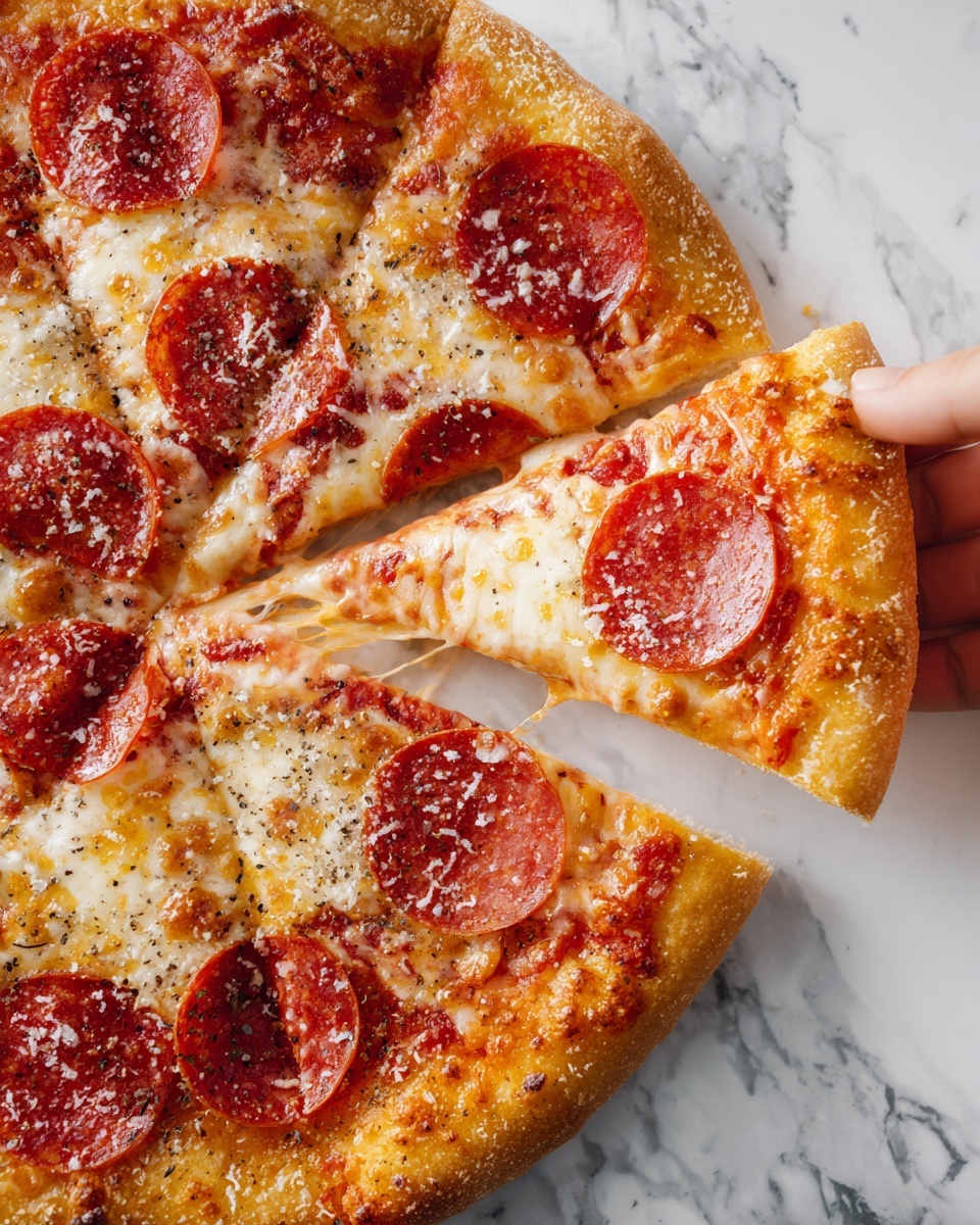 - Second rise (optional): Allow the shaped dough to rest for 10 to 15 minutes while you preheat the oven to 475°F (245°C). For a fluffier pan-style crust, let the dough rise again for 20 to 30 minutes before baking.