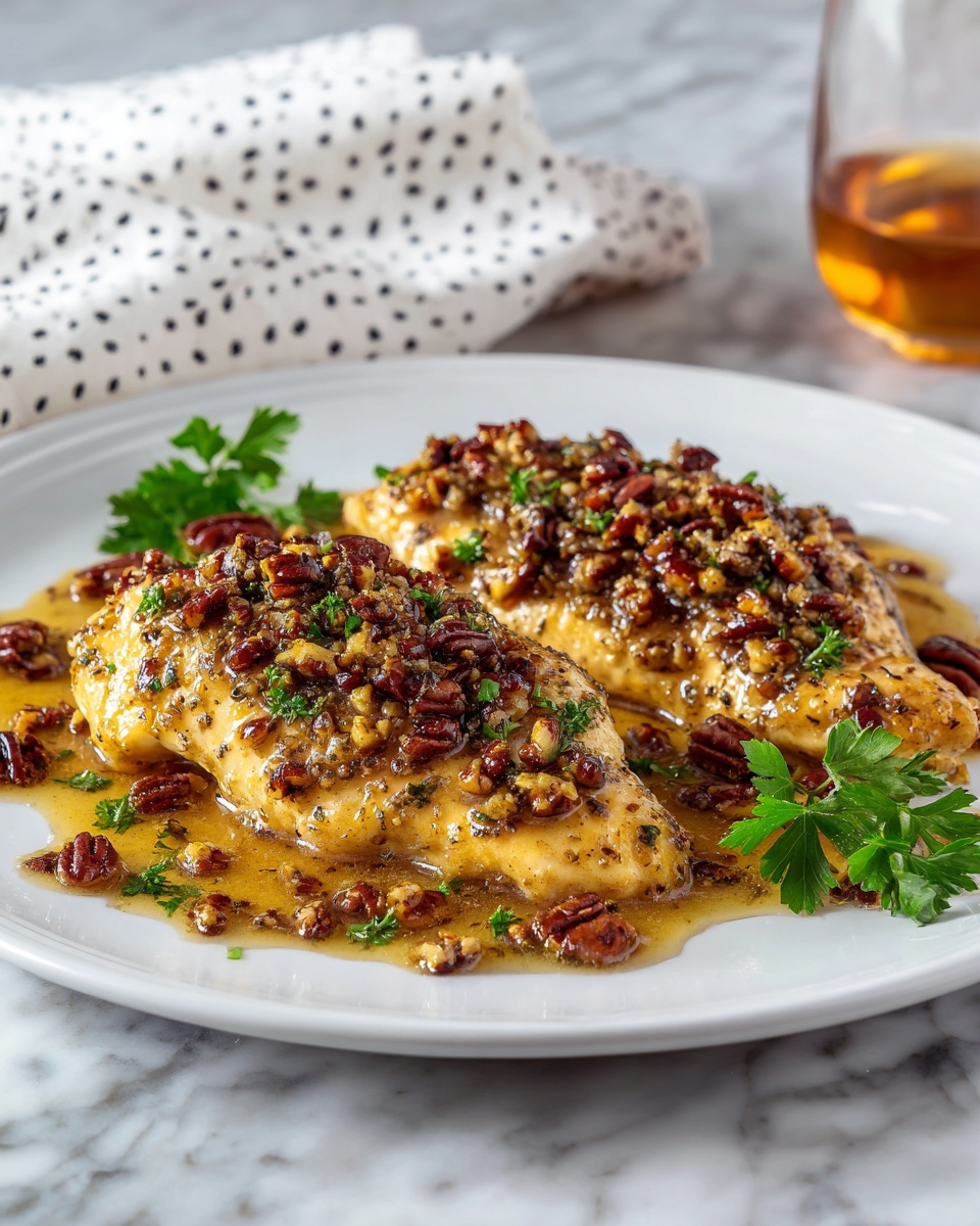 Don’t rush! Let your chicken rest for about 5 to 10 minutes before plating. Resting allows the juices to redistribute, so every bite is juicy and tender. Spoon some of the intoxicating honey-pecan sauce from the pan on top for a finish that’s as beautiful as it is mouthwatering.