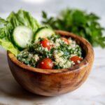 To elevate the presentation and flavor, garnish your Lebanese Tabbouleh Salad Recipe with a few sprigs of fresh mint or small lemon wedges. A sprinkle of sumac or a handful of pomegranate seeds can add a festive touch and a pop of tartness or sweetness, respectively, making it visually appealing and exciting to the palate.