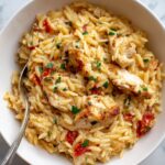 Marry Me Chicken Orzo is a creamy, flavorful one-pan dish featuring tender chicken breasts seared to perfection and simmered in a luscious sauce with sun-dried tomatoes, garlic, and Parmesan cheese. The dish combines orzo pasta with a rich, velvety cream sauce and fresh basil for a comforting, romantic dinner that’s easy to prepare on the stovetop.