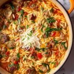 This Marry Me Sausage Orzo Soup is a comforting, flavorful one-pot meal featuring Italian sausage, tender orzo pasta, fresh vegetables, and a savory tomato broth. Ready in just 35 minutes, it’s perfect for a satisfying weeknight dinner or cozy lunch, garnished with Parmesan cheese for an extra touch of richness.