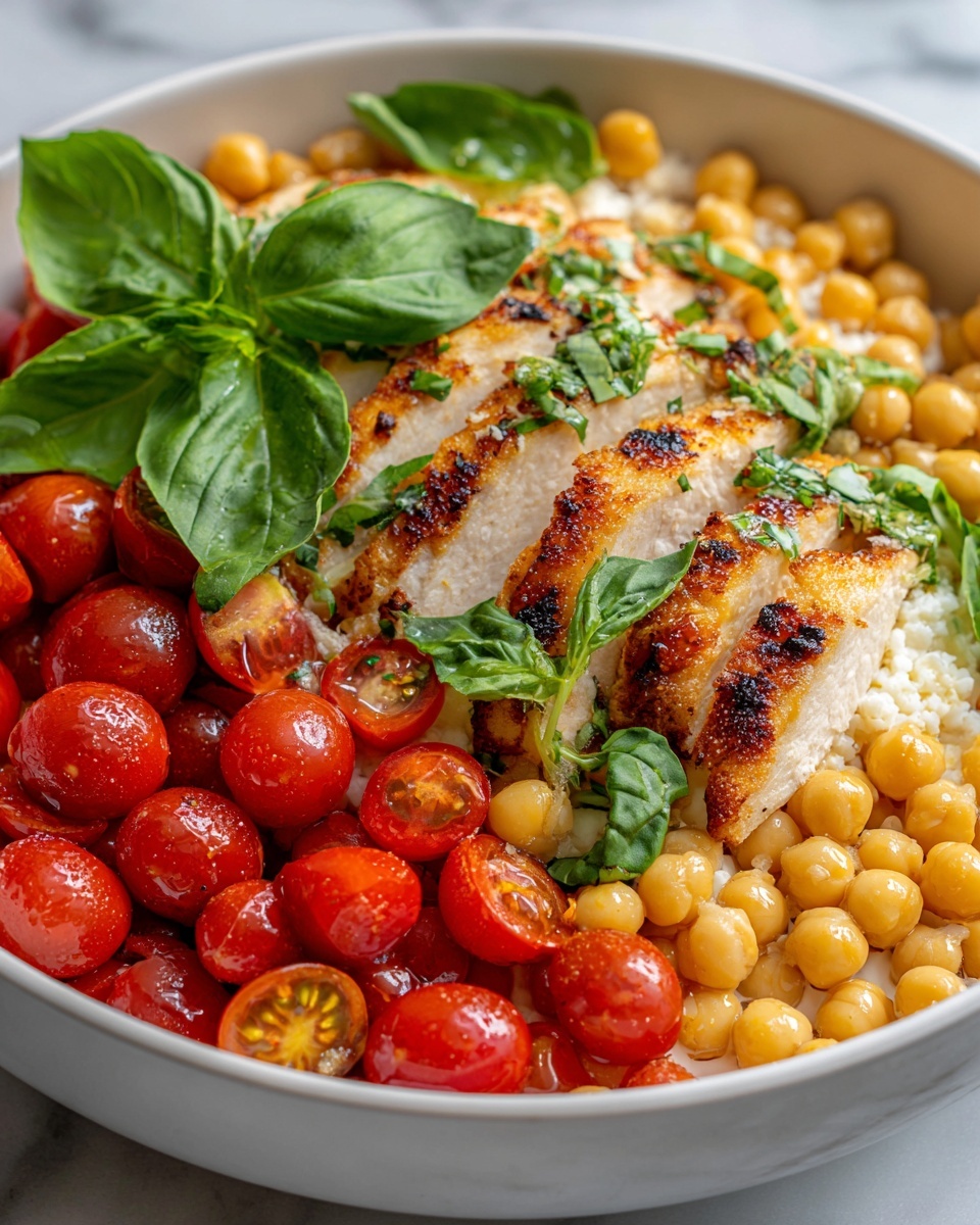 The ingredients for this dish are wonderfully straightforward yet essential for creating that perfect balance of flavors, textures, and colors. Each element plays an important role—from the succulent chicken to the crisp veggies and tangy feta.