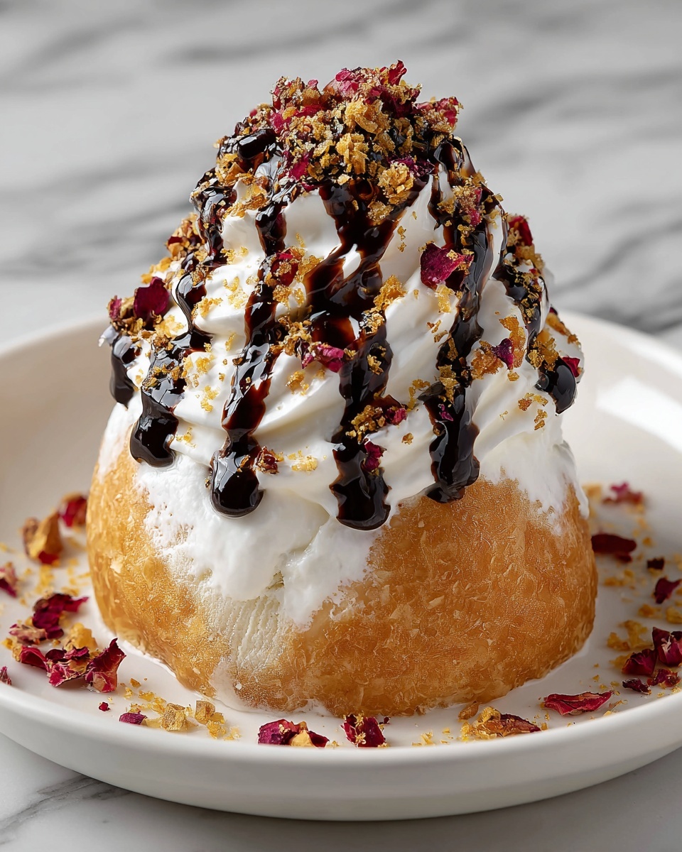 - Whipped cream: A light, airy topping that complements the rich fried coating.