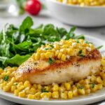 This Mexican Street Corn Chicken recipe combines tender, seasoned chicken breasts baked under a creamy, spicy corn topping inspired by traditional Mexican street corn. Topped with queso fresco and fresh cilantro, this dish offers a flavorful, easy-to-prepare meal perfect for weeknights or casual gatherings.