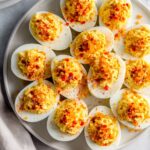 Million Dollar Deviled Eggs are a rich and creamy twist on the classic deviled eggs, combining mayonnaise, Dijon mustard, vinegar, sugar, and a touch of butter for a silky smooth filling. Garnished with paprika and fresh herbs, this American appetizer is perfect for parties, Easter, or any gathering.