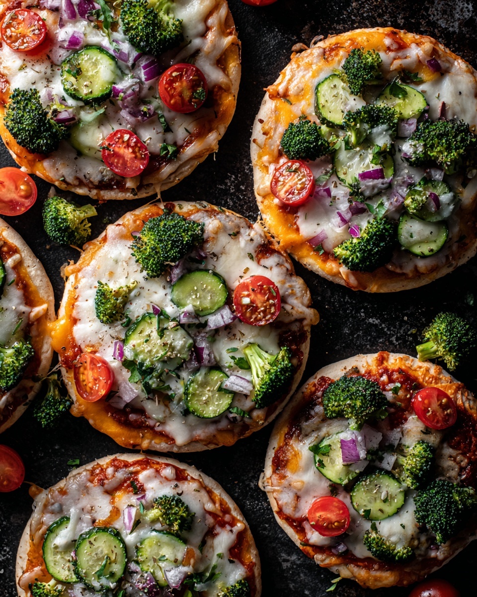 - Serve: Remove from the oven and serve the mini veggie pizzas warm for the best flavor and texture.