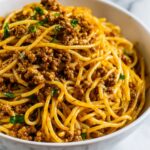 Begin by heating olive oil in a large skillet or pot over medium-high heat. Add the ground beef and cook it until beautifully browned, breaking it apart as you go to ensure even cooking. This step is key because a good sear builds flavor, and well-browned meat brings out that hearty, meaty base you want in this pasta.