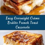 This Overnight Crème Brûlée French Toast is a decadent and delicious breakfast casserole featuring a rich caramel base topped with layers of tender French bread soaked in a creamy egg custard. Prepared ahead of time and baked to golden perfection, it serves up to 8 people, combining the indulgence of crème brûlée flavors with the comfort of classic French toast.