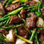 This Oyster Sauce Beef & Onion Stir-Fry is a quick and flavorful dish featuring tender slices of beef sirloin or flank steak stir-fried with caramelized onions and a savory oyster sauce blend. Enhanced with garlic, ginger, and a touch of spice, this 25-minute recipe serves as a perfect hearty meal when paired with steamed rice.