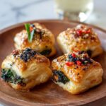 Once the puff pastry samosas are baked and slightly cooled, arrange them on your serving platter. Now comes the fun part: drizzle with tangy tamarind chutney and smooth whisked yogurt. Sprinkle a little chaat masala over the top, add a generous handful of crunchy sev, and if you’re feeling fancy, scatter some jewel-like pomegranate seeds and fresh coriander leaves for that extra zing and crunch. Serve immediately while the pastry is still crisply delightful.