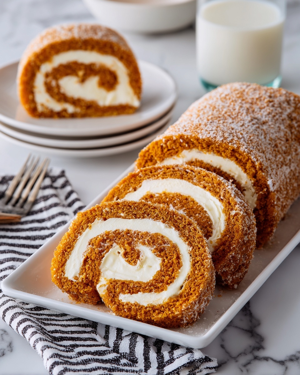 Try slicing the roll into thick rounds and arranging them on a rustic wooden board with fresh cranberries and sprigs of rosemary for a stunning holiday dessert display. You can also cut bite-sized pieces and serve with toothpicks as a festive party treat. No matter how you present it, the Pumpkin Roll Cake – A Delightful Fall Treat Recipe will impress every guest!