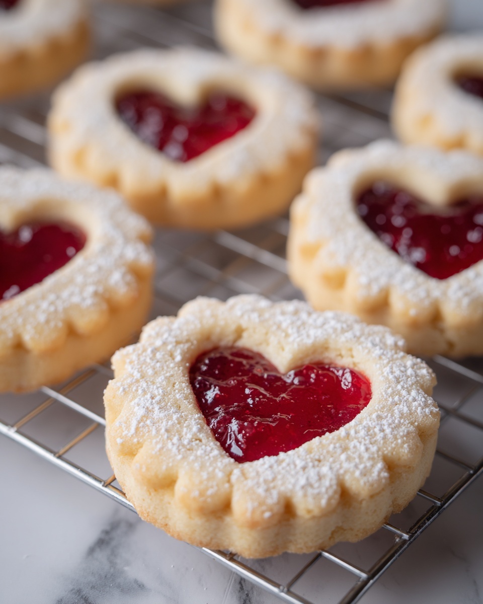 Raspberry Linzer Cookies pair beautifully with a warm cup of tea, especially black or herbal blends that complement the almond and raspberry notes. A mild coffee or a glass of cold milk also makes a delightful partner to balance the cookies’ sweetness.