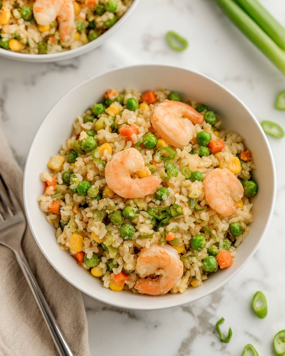 Sprinkle sliced green onions on top of your shrimp fried rice just before serving. This simple garnish adds a crisp freshness and a mild onion bite that contrasts beautifully with the warm, savory rice. You can also toss in a few toasted sesame seeds for a subtle crunch and extra appeal.