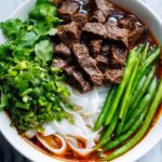 When the beef is tender and nearly falling apart, stir in the creamy coconut milk along with the haricots verts. Increase the slow cooker setting to high and cook until the green beans are tender but still crisp—this contrast in textures really elevates the dish. Finally, turn off the heat and stir through fresh cilantro leaves, spinach, and fresh lime juice. The leafy greens wilt beautifully into the sauce, adding freshness and nutrition while the lime juice lifts the flavors to a bright finish. Serve hot, garnished with extra cilantro sprigs if you like.