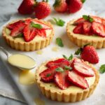 - Assemble the Tarts: Fill each cooled tart shell with a layer of honey custard, spoon lemon curd on top, and finish by arranging fresh strawberry halves or slices over the top. Garnish with mint leaves if desired.