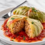 Delicious homemade stuffed cabbage rolls filled with a flavorful mixture of ground beef, rice, and spices, baked in a rich tomato sauce. This comforting dish is perfect for family dinners and showcases tender cabbage leaves wrapped around a savory filling, slow-baked to perfection.