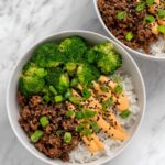 This Teriyaki Ground Beef and Broccoli recipe is a quick and flavorful stir-fry dish perfect for a weeknight dinner. Juicy ground beef is cooked with aromatic ginger and garlic, then coated in a rich teriyaki sauce and combined with tender-crisp broccoli. Finished with a spicy mayo accompaniment and garnished with toasted sesame seeds and scallions, this dish offers a perfect balance of sweet, savory, and spicy flavors served over rice or cauliflower rice.