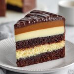 This classic chocolate cake features moist, rich layers made with cocoa powder and boiling water, layered with a light cream filling and finished with a smooth chocolate buttercream frosting. Perfect for celebrations or an indulgent treat, this recipe delivers a tender crumb and deep chocolate flavor with a luscious frosting and creamy filling.