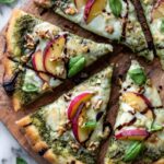 While this pizza is best enjoyed fresh, you can freeze baked slices wrapped well in plastic and foil for up to a month. Thaw in the refrigerator overnight before reheating to keep the texture intact and preserve the vibrant flavors of the pesto and nectarines.