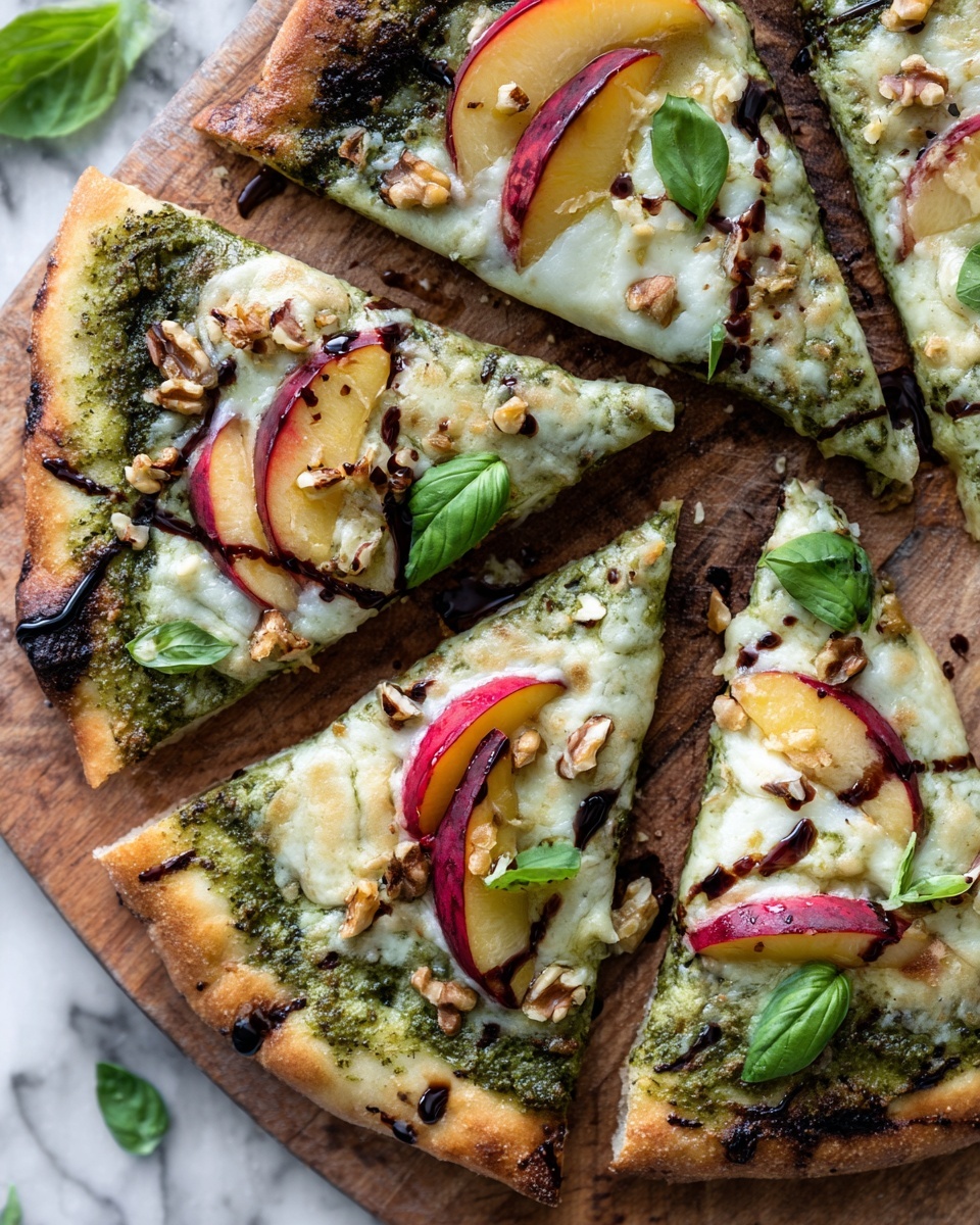 Delighting friends and family with the unique and layered flavors of the Toasted Walnut Pesto and Caramelized Nectarine Pizza with Spicy Balsamic Drizzle Recipe is such a joyous experience. Its blend of nutty, sweet, tangy, and spicy elements makes it a standout dish that’s surprisingly easy to bring together. I can’t wait for you to try it and see how quickly it becomes a favorite for your gatherings or cozy dinners at home.