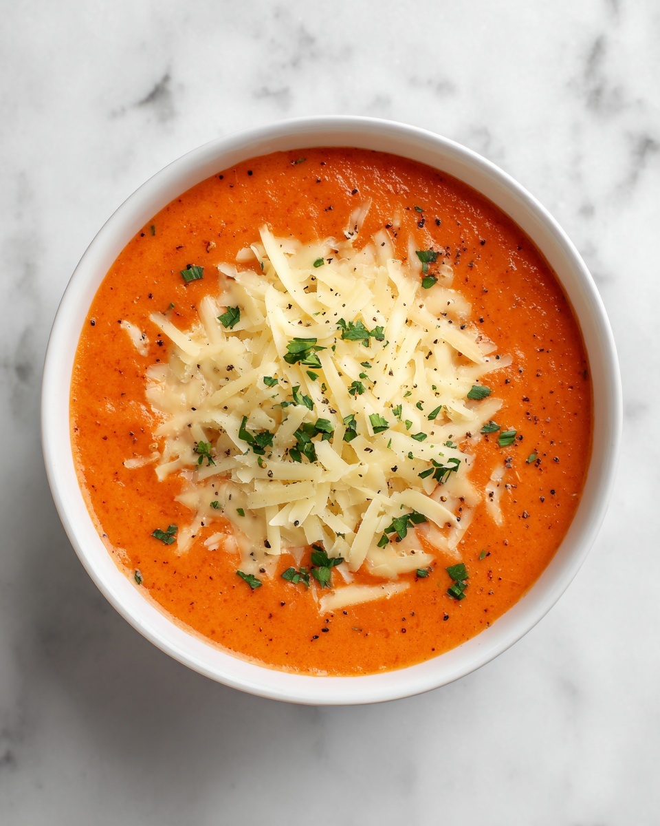 Topping your soup thoughtfully takes it from delicious to extraordinary. Sprinkle a little extra grated Parmesan cheese on top for extra savory goodness. Fresh basil leaves add a pop of green and fragrant aroma. Croutons provide satisfying crunch and texture contrast, and a gentle drizzle of cream adds elegance and extra silkiness.