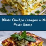 A creamy and flavorful White Chicken Lasagna recipe featuring a rich pesto béchamel sauce layered with ricotta, mozzarella, and Parmesan cheeses, baked to perfection for a comforting Italian-inspired meal.