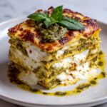 A creamy and flavorful White Chicken Lasagna recipe featuring a rich pesto béchamel sauce layered with ricotta, mozzarella, and Parmesan cheeses, baked to perfection for a comforting Italian-inspired meal.