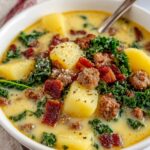 This hearty and comforting Zuppa Toscana recipe brings together savory Italian sausage, tender Yukon Gold potatoes, fresh kale, and creamy heavy whipping cream to create a rich and flavorful soup. Enhanced with sautéed onions and garlic, and topped with crispy bacon bits, this classic Tuscan-inspired soup is perfect for chilly days and serves as a satisfying meal for the whole family.